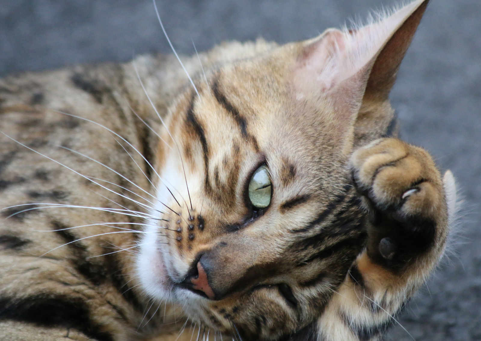 ・前足で目をこする、顔を床や物にこすりつける