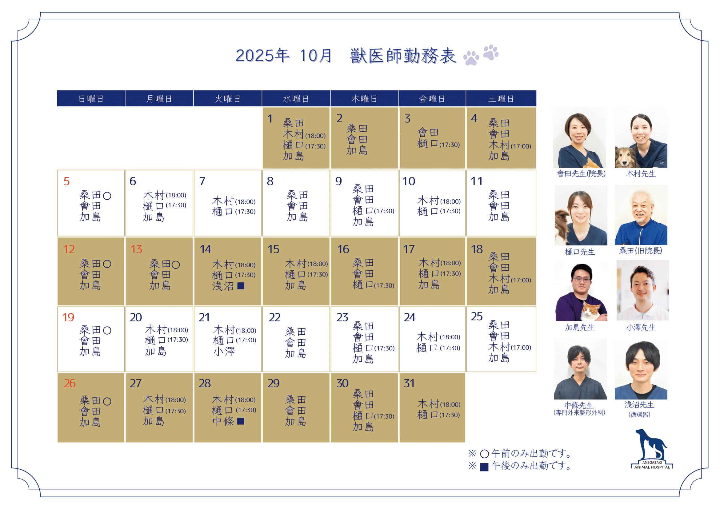 出勤スケジュールは変更になることがあります。詳しくはお電話でお問合せください。