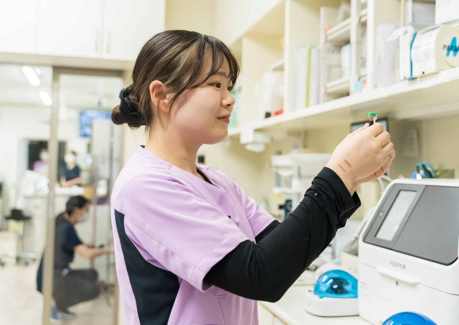 吉田さん:入院管理や検査補助に加えて、最近では採血や皮下点滴、麻酔管理の補助といった処置も担当するようになりました。
